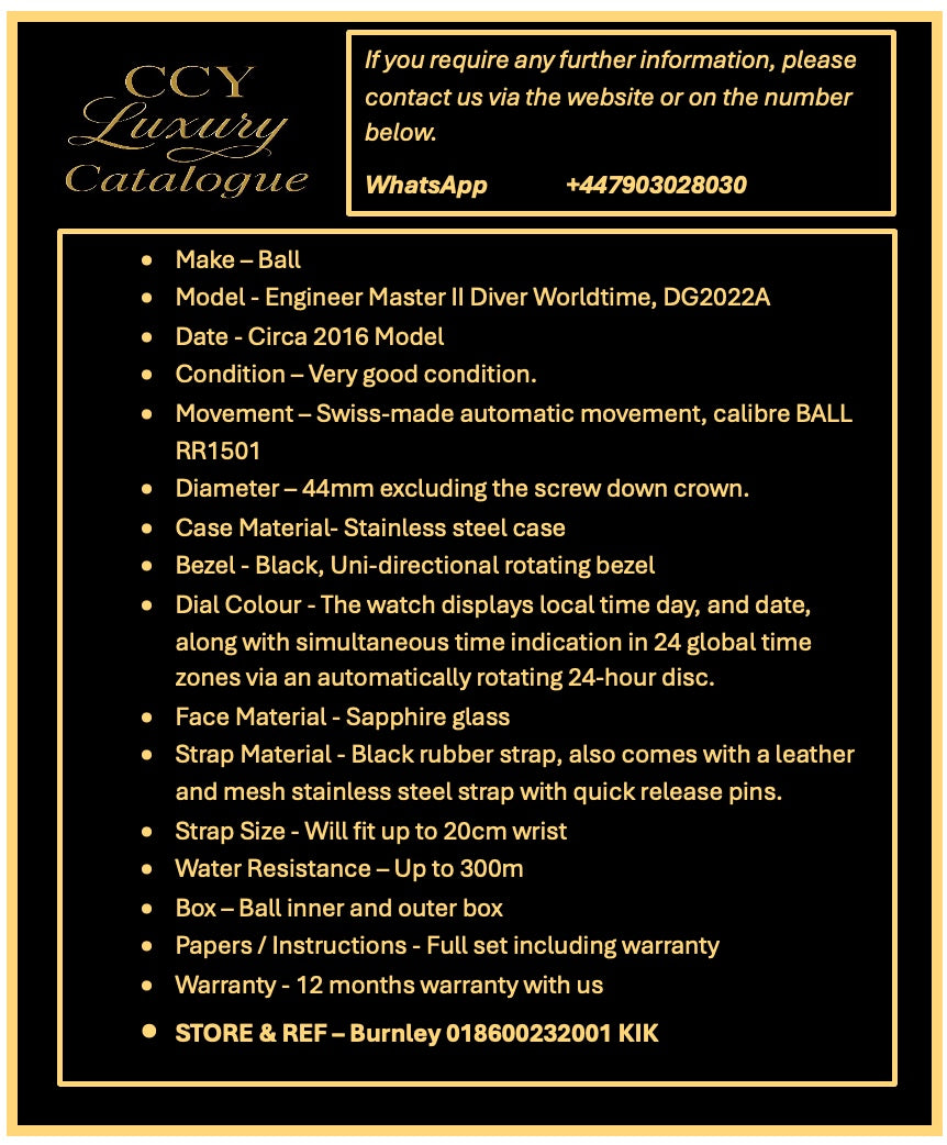 Ball Diver Worldtime DG2022A-PA-WH